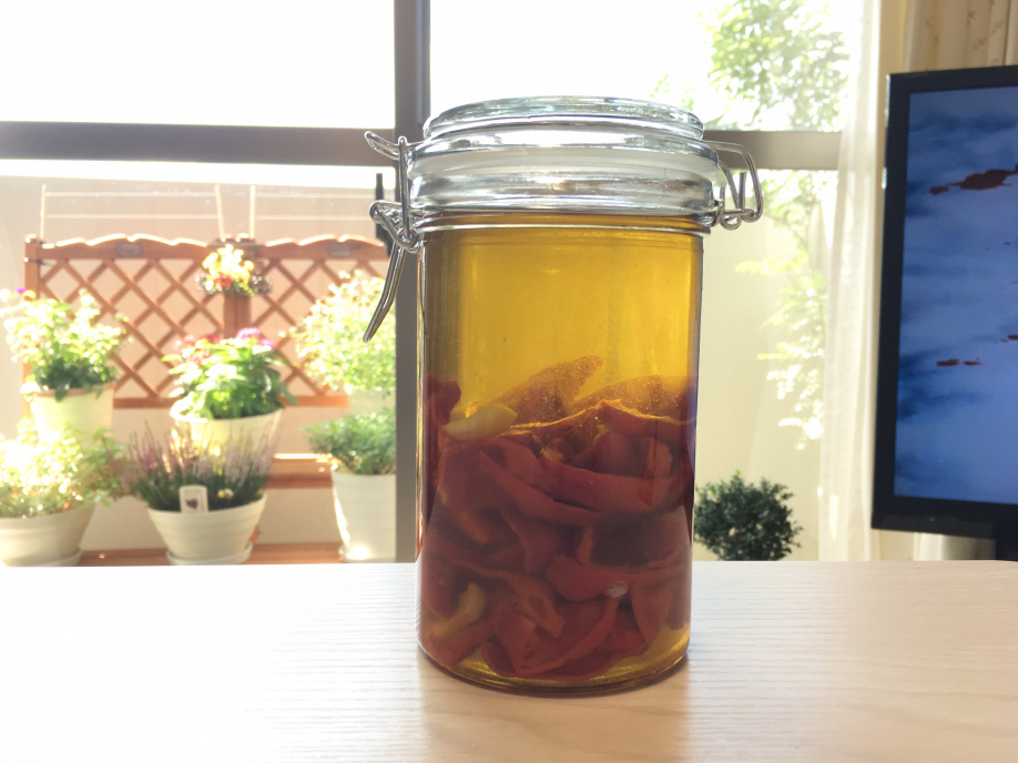 イタリア料理屋さんとかで辛味を足すときに,オリーブオイルの中に唐辛子が入っているあれです。