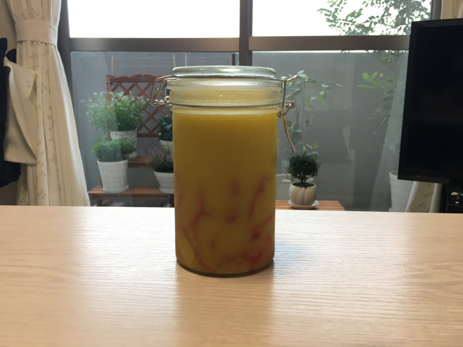 ネットで見ると,これを冷蔵庫の中に入れて1週間ほどで完成だそうです。