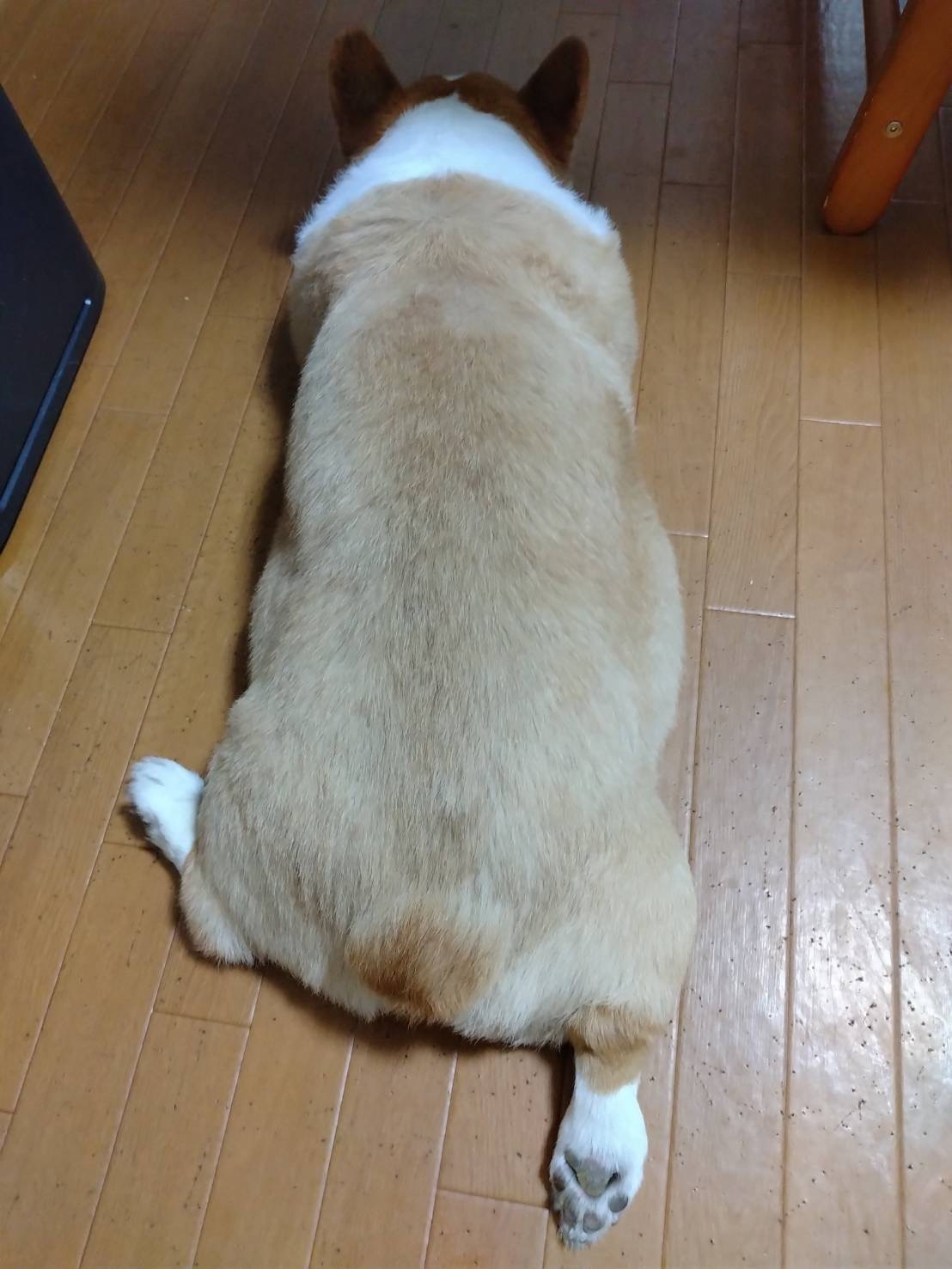 ちなみに実家で飼っているコギーも日頃から食べ過ぎて、お腹パンパンです。