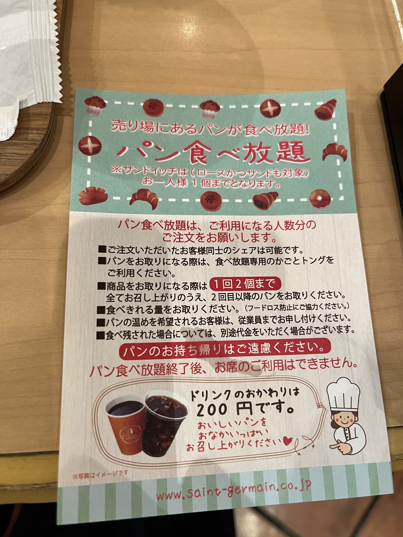 店頭商品は食べ放題!ただしサンドウィッチは1つまで。